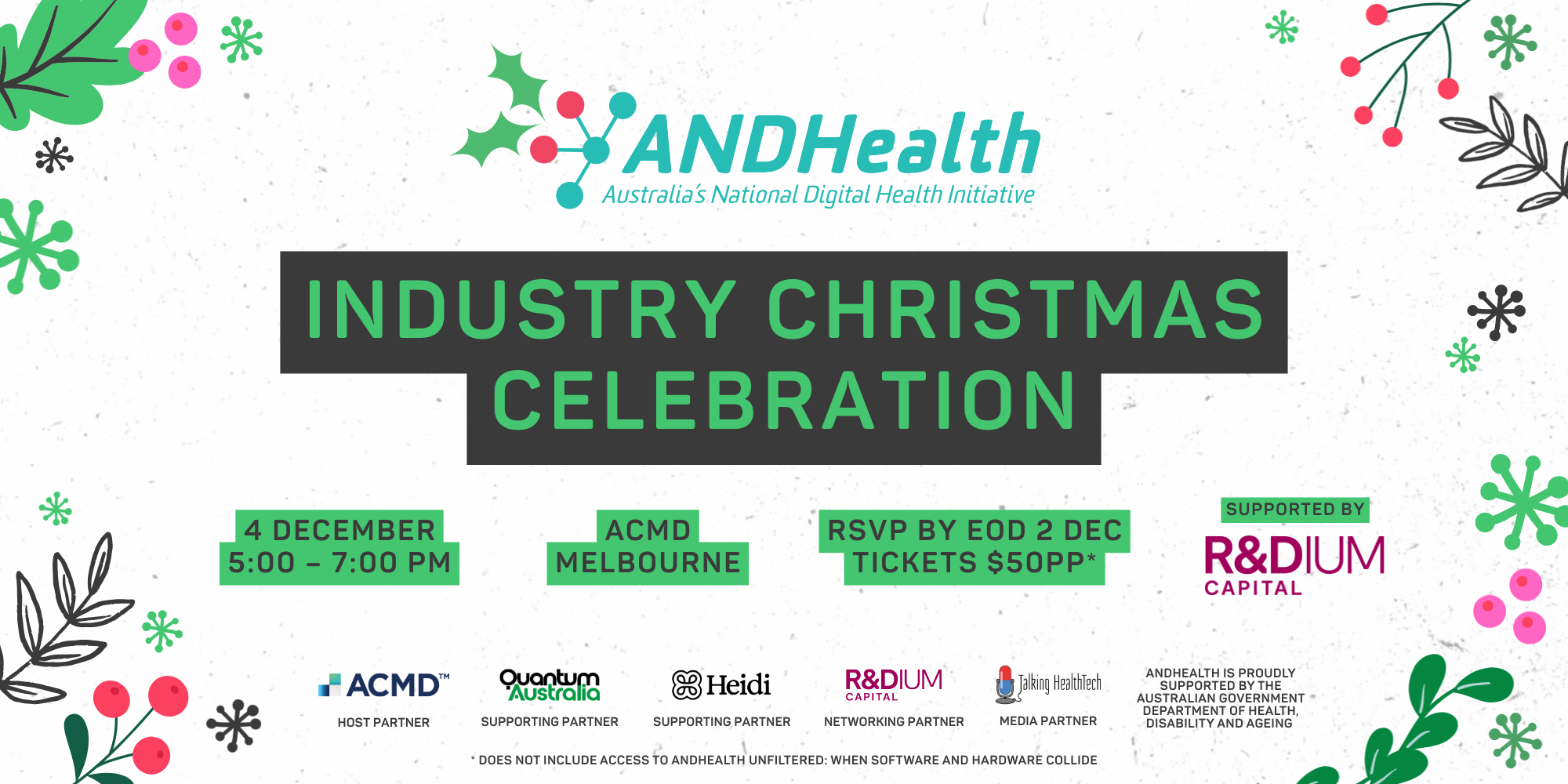 With thanks to Host Partner ACMD and Networking Partner Radium Capital, the Industry Christmas Celebration will commence immediately after the formal proceedings of ANDHealth Unfiltered: When Software and Hardware Collide.